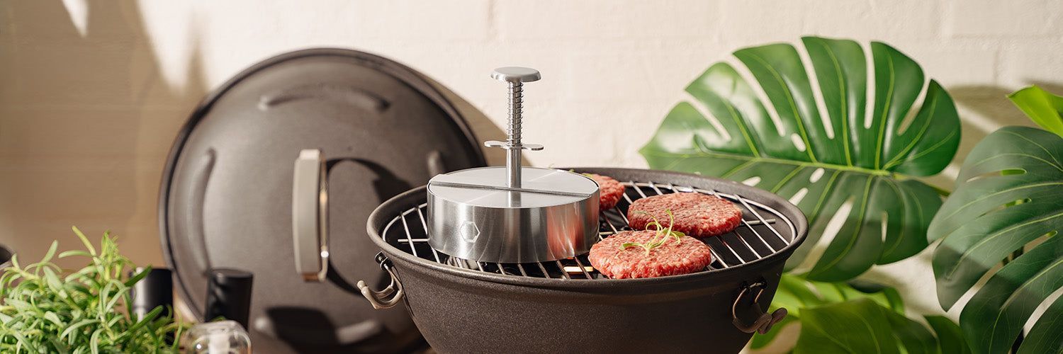 Outdoors, the ONYX COOKWARE™ BURGER PRESS shines just as brightly. Take it with you on your outdoor grilling adventures, whether it's a backyard barbecue, camping trip, or tailgate party. Crafted from durable stainless steel, this press is built to withstand the elements, ensuring that you can achieve burger perfection under the open sky.