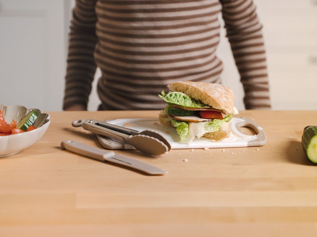 This all-in-one set is designed to transform cooking into an exciting family adventure. Equipped with child-safe knives, a wavy cutter, a peeler, a tong, and a cutting board with a secure anti-slip base, it ensures your little hero can learn kitchen skills with confidence and care. The knives are sharp enough to cut through meat, fruit, and vegetables, but not sharp enough to slice fingers, making them much safer than traditional knives.