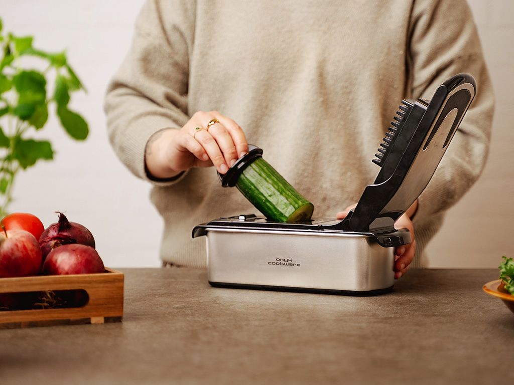 Crafted from full stainless steel, this chopper combines durability with a sleek, modern design. The secure lock-function ensures that the blades stay safely in place during use, providing you with peace of mind while working. When you’re done, cleanup is effortless, thanks to its dishwasher-safe components. Whether you’re slicing, dicing, or spiralizing, this all-in-one tool simplifies your kitchen prep, saving you time and effort.