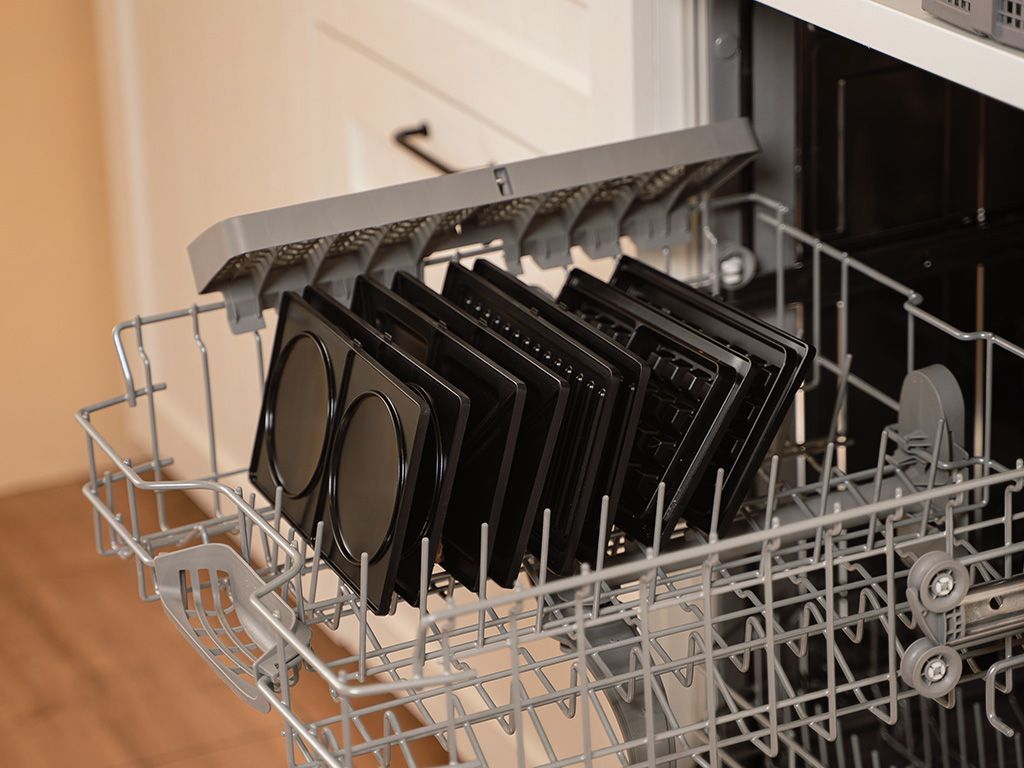 The ONYX COOKWARE™ 4-IN-1 SANDWICHMAKER stays firmly in place, thanks to its non-slip feet that keep it stable through every press, lift, and cook. And when you’re done, it stores just as smartly. The slim design lets you stand it upright, so it fits easily into narrow cabinets or shelves without taking up unnecessary space. After cooking, cleanup should be the easy part - and with the ONYX COOKWARE™ 4-IN-1 SANDWICHMAKER, it is. The cooking plates lift out in seconds and are fully dishwasher safe, so you can skip the soaking and scrubbing. Even if you prefer to rinse by hand, the ceramic non-stick coating makes it effortless. Melted cheese, batter, or crisped edges wipe off easily without sticking or leaving a mess behind. From start to finish, it’s designed to make your cooking easier - and your cleanup faster.