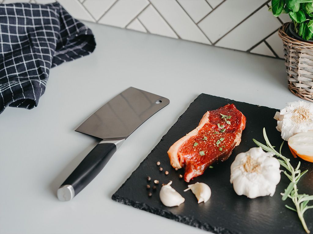 The large rectangular blade paired with a significantly heavier weight than other knives makes for a great knife, which has both strength and precision. The ONYX COOKWARE™ CLEAVER is especially versatile, as it’s suited to both large, aggressive movements like cleaving and fine, precise ones like mincing and slicing.