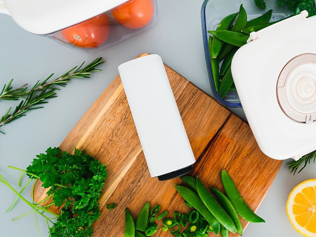 We have taken your regular food container, and added a vacuum valve to it. Then we have designed a small and convenient battery-powered vacuum pump, that fits right on the valve. With the small size, and (in our opinion) stylish design – it can easily fit on your seasoning shelf or other place that is easily accessible at all times.